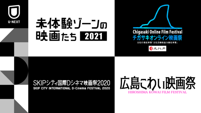 USEN-NEXT GROUPの株式会社 U-NEXT(本社:東京都品川区、代表取締役社長:堤 天心)が運営する動画配信サービス「U-NEXT」は、未体験ゾーンの映画たち2021、茅ヶ崎映画祭、SKIPシティ国際Dシネマ映画祭2020、第3回広島こわい映画祭の4つの映画祭と連携し、いずれも2月より上映作品を配信することを決定しました。2020年に引き続き、今後も日本全国の映画祭と連携することで、映画ファンが「映画を楽しめる環境作り」を後押ししてまいります。
