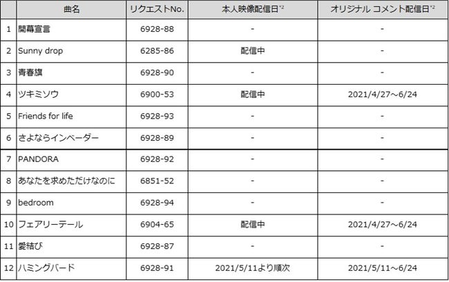 の通信カラオケDAMに配信するほか、期間限定でお楽しみいただけるメンバーからのオリジナルコメント映像配信、カラ