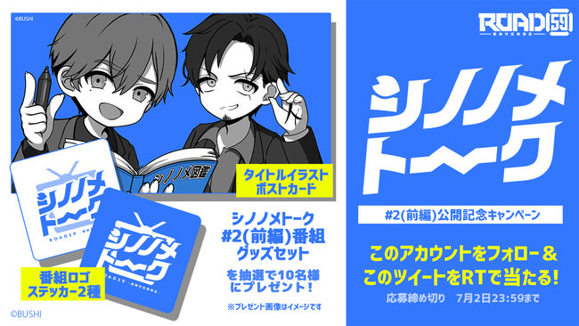 株式会社ブシロード(本社:東京都中野区、代表取締役社長:橋本義賢、以下ブシロード)は、「ROAD59 -新時代任侠特区-」春雲組キャスト出演のバラエティトーク番組「シノノメトーク」#2前編を、YouTubeにて公開いたしました。また、響ラジオステーションにて配信中の八薙バクト役 君沢ユウキと氷室ショウ役 砂川脩弥がパーソナリティをつとめるWEBラジオ番組「ROAD59 -新時代ラジオ特区-」にて、アンソニー役 渡辺和貴をゲストに招いた第10回の配信が開始したことをお知らせいたします。さらに、各番組公開に合わせて番組グッズが当たるキャンペーンも開始いたしました。報道関係の皆様におかれましては、ぜひ本情報をお取り扱いいただけますよう、お願い申しあげます。