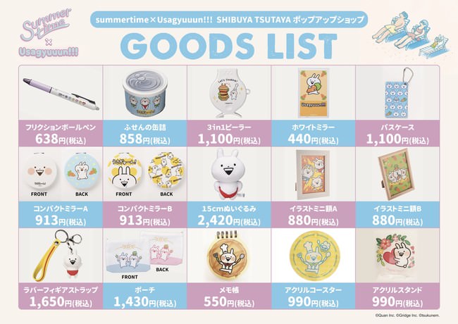 開催期間中、来場が叶わないお客様への対応として6月30日(水)~8月1日(日)の間TSUTAYAオンラインにてcinnamons × evening cinema「summertime」×「うさぎゅーん!」のコラボグッズの購入が可能です。