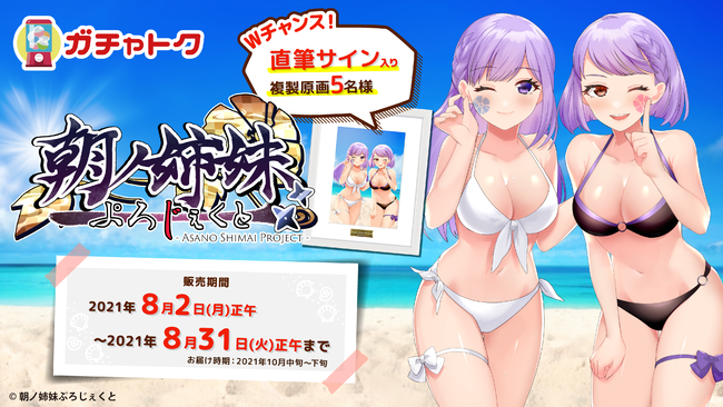 オンラインくじサービスである『ガチャトク』にて、2021年8月2日正午より、『朝ノ姉妹ぷろじぇくと』の掲載を開始いたしました。