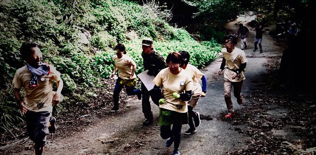 ミッションでゾンビから逃げ惑う参加者達。急な坂が「心臓破りの坂」と呼ばれている。
