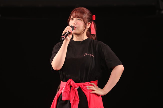 曲の終盤にはセンターステージへと移動し、そのまま「無重力ランデヴー」を披露。通路も使って歌うシーンもあるなど、みんなと一緒に楽しみたい想いが演出にも込められていた。さらに、メロウなバラード「告白星」ではスタンドマイクを使い、気持ちを込めた歌声がみんなの心を包み込んでいく。