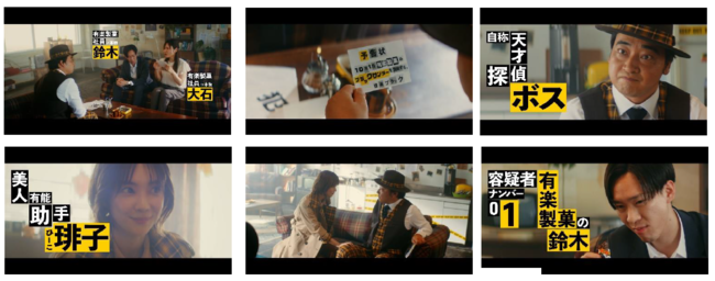 「黒雷探偵事務所~怪盗ブラックを追って~」は、斉藤さん演じる⾃称名探偵のボスと倉科さん演じる美⼈助⼿の琲⼦が所属し⼆⼈三脚で日々難事件を解決に導いている「黒雷探偵事務所」に、「ブラックサンダー」を販売する有楽製菓から捜査依頼が入り、次々と浮上する容疑者候補の中から犯人を見つけるまでをストーリー化した動画シリーズです。9月6日のEpisode1.2の公開を皮切りに、全7つのエピソードが順次公開されます。またメイキング映像も同時公開されます。誰が犯人なのか一緒に推理しながら動画をお楽しみください。