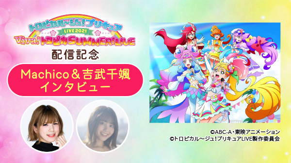 - 内容:auスマートパスプレミアムでは『トロピカル~ジュ!プリキュアLIVE 2021 Viva!トロピカSUMMER!LIVE』の配信を記念して、ライブに出演するMachicoさん、吉武千颯さんのインタビューを公開します。