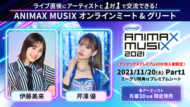 さらに、今回『ANIMAX MUSIX 2021 ”オンラインミート&グリート”』に参加する伊藤美来、芹澤優それぞれに独占インタビューしたオリジナル番組『Close-Up Voice』も配信していきますので、併せてお楽しみください!