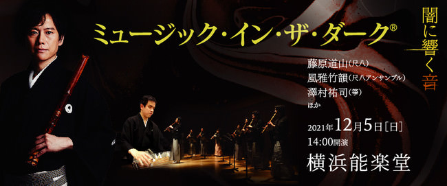 「ミュージック・イン・ザ・ダーク ~闇に響く音~」は、視覚に障がいのある演奏家との合同メンバーによるアンサンブルが共に創り上げる暗闇のコンサートです。”何も見えない” 暗闇の空間で、演奏者も観客も、視覚以外の感覚を研ぎ澄ませて未知の音楽体験を共有します。今年は、横浜能楽堂の約150年の歴史ある能舞台をステージに、藤原道山(尺八)と風雅竹韻(尺八アンサンブル)、視覚障がいのある澤村祐司(箏)を迎え、シリーズ初となる日本の伝統楽器による編成でコンサートを企画。和の響きの魅力がご堪能いただけます。https://mmh.yafjp.org/mmh/recommend/2021/12/2021-4.php