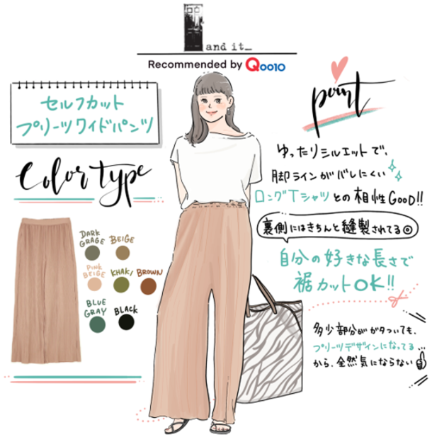 人気のコーナー、Qoo10 コーデ『今日のりおポチ』では、内田理央さんのこの秋のおススメファッションアイテムとしてand it_(アンドイット)のセルフカットプリーツワイドパンツが紹介されました。