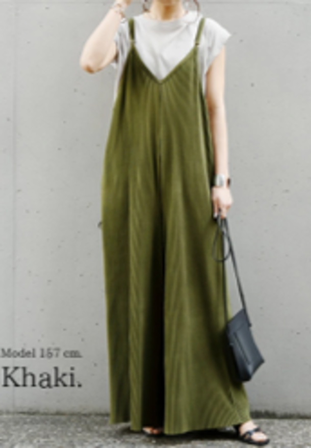 ■商品名:セルフカットプリーツワイドサロペット(7色展開)