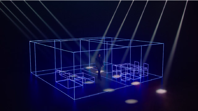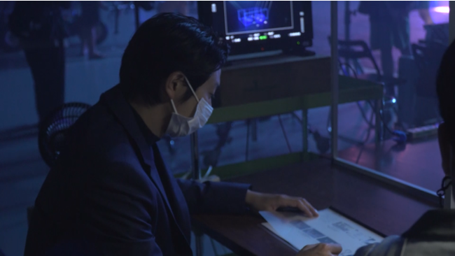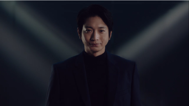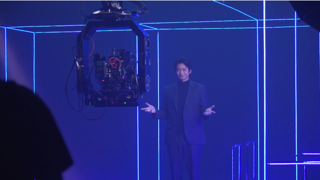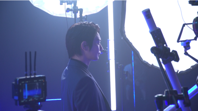 ■青い光で張り巡らされた幻想的な空間に、スタイリッシュなスーツ姿の向井理さんが登場!
