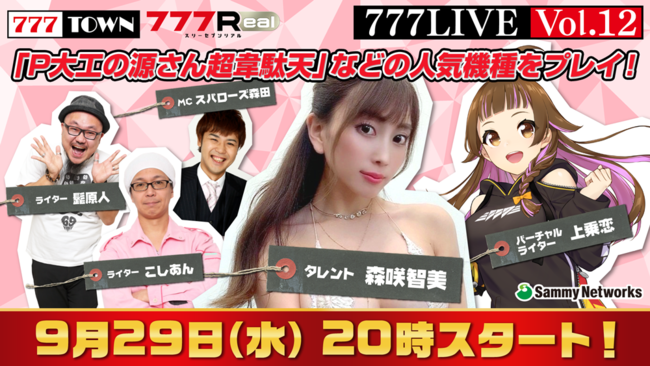 タレントの森咲智美さん、ぱちんこ・パチスロライターの髭原人さん、こしあんさんが「777TOWN」、「777Real」や「ナナリズムダッシュ」を生プレイ!サービスの最新情報、出玉イベント、新機種情報、視聴者プレゼントに加え、最新実機情報など、お得な情報も盛りだくさん!