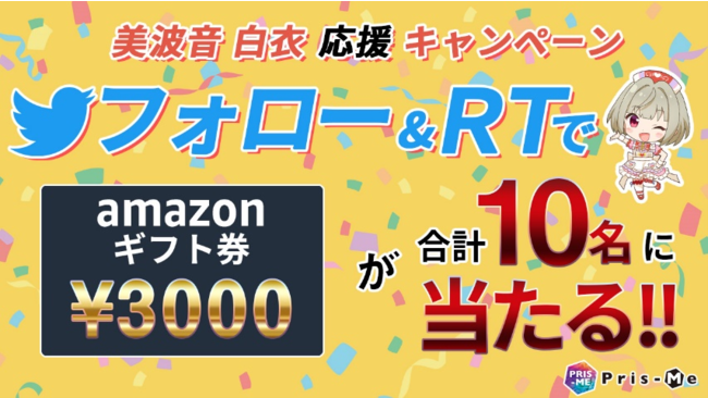 PRIS-ME公式Twitterより美波音白衣応援キャンペーン「フォロー&RTでamazonギフト券プレゼント」開催中!