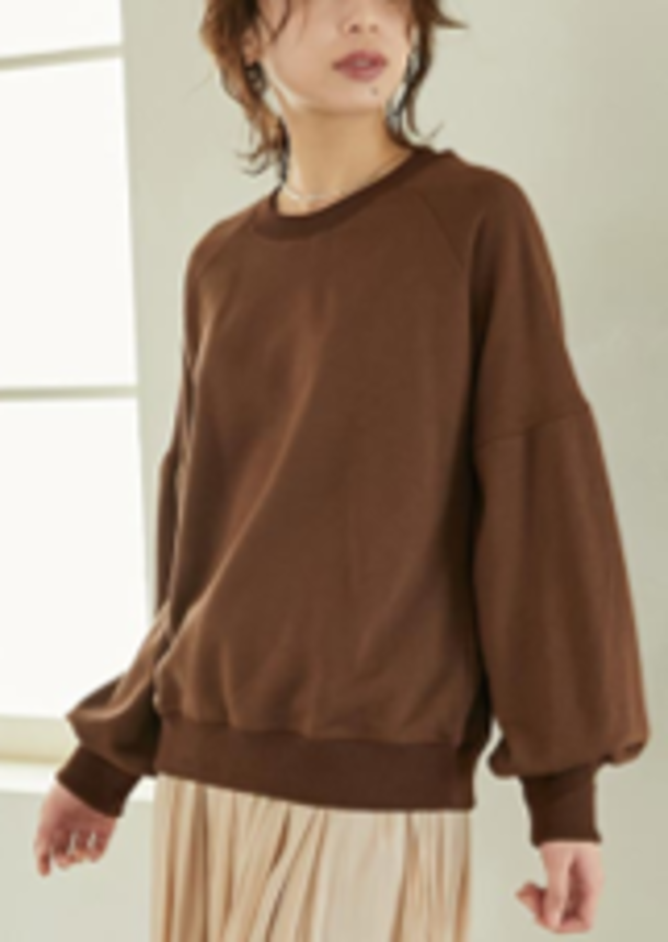 ぽわんとした丸い袖がポイントのトレーナー。腕部分はふんわり&手首はキュッとしたメリハリのあるボリュームスリーブが大人可愛さを感じさせ、ボトムスを選ばないクルーネックのシンプルなデザインながらメインにもなる優秀なアイテム。さらっとした柔らかい生地感で着心地も良く、季節の変わり目には特に重宝する1枚になりそうです。