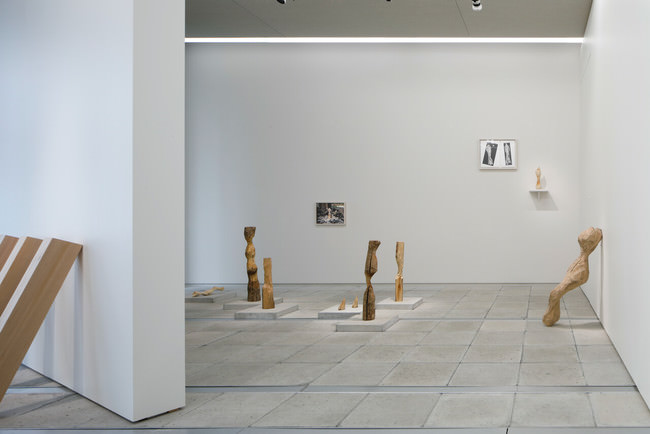 ビーバーの飼育エリアに角材を設置し、ビーバーに齧られた木を集めた。それらの形状は人体や鳥のようにも見えるが、これはビーバーが堅い節などをよけて齧った結果だとも考えられる。そうであれば、フォルムを作り出しているのは木自体だとも言えるだろうか。それらの形状を、彫刻家による模刻、CNC切削機械での複製、の2手法でそれぞれ3倍サイズで作り、比較するように併せて展示している。なお、ビーバーが齧った木の内部にはカミキリムシが複雑な坑道を作っていることが、後になって分かった。その内部構造をCTスキャンを用いて探っている。