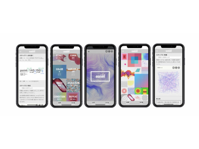 Easelは、プログラミングの学習に「アート」(創造性)の要素を取り入れた全く新しい教育ソフトです。スマートフォンでさまざまな視覚的な表現(イメージ、アニメーション、インタラクション)を制作しながら、プログラミングをいつでも手軽に学ぶことができます。このワークショップでは、スマートフォンを使用して創造的なプログラミング「クリエイティブコーディング」の世界を実際に作品を創作しながら体験します。