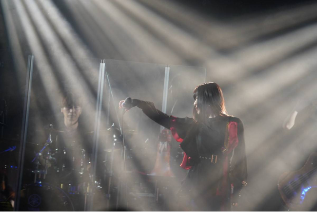 一転、新曲「命ノ証」では疾走感あふれるバンドサウンドと気迫こもる歌声で圧倒するかのようなステージを披露した。