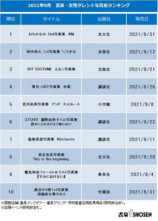 <2021年9月 書泉・女性タレント写真集売上ランキング>