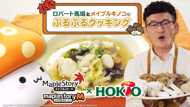 本日公開したコラボスペシャル動画の第3弾は、お笑いトリオ ロバートの馬場裕之さんと、『メイプルストーリー』のマスコットキャラ「メイプルキノコ」による「ロバート馬場とメイプルキノコのぷるぷるクッキング」をお届けします。