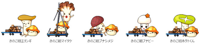 『メイプルストーリー』、『メイプルストーリーM』両タイトルの全プレイヤーに、ホクトのキャラクター「きのこ組」とコラボしたゲーム内アイテムをプレゼント中です。期間内に忘れずにお受取りください。