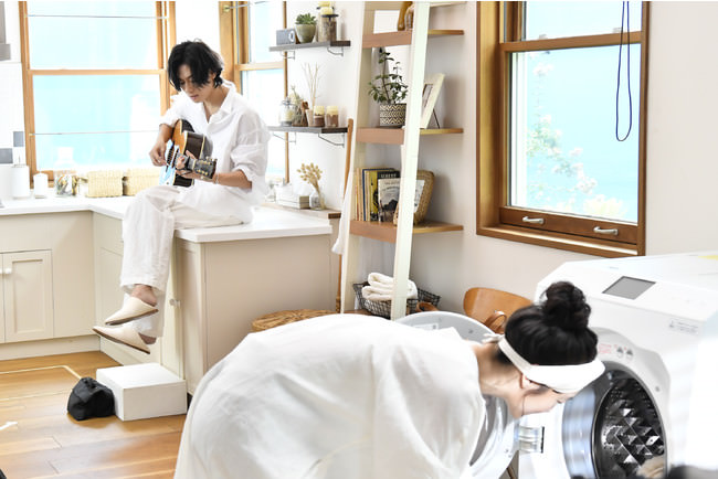 本CMでは、人気ロックバンド[Alexandros]が『「#センタク」プロジェクト』のコンセプトに共感し、書き下ろした新曲をテーマソングとして起用。『“洗濯”というものを深く考えたときに、“慎ましさ”だったり、“今日までの自分を洗い流して、明日また生まれ変わる、尊い行為”だと感じました。」とメッセージを寄せています。また「#センタク」のCMには、作詞・作曲を手掛けた川上洋平さんが出演し、書き下ろした新曲の弾き語りを披露しています。清潔感のある白いシャツを身に纏い、爽やかに弾き語りをする川上さんに注目です!「#センタク」の〝テーマソング″として、この楽曲が皆さまの日常に寄り添っていきます。