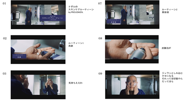 Web CMでは、ナダルさんがPROUDMEN.の商品でスキンケアをしながら、モデル顔負けのキメ顔や今までとキレの違うクールなギャグを披露。また、それぞれの特設サイトでは、撮影現場のナダルさんに相方の西野さんが突撃し、対決企画であることを伝えるプロローグや、対決の優劣の状況もポイントで公開します。