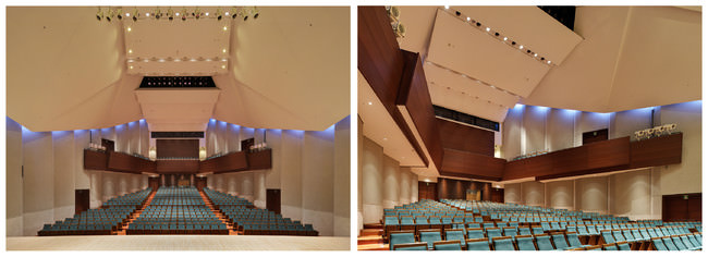 舞台周りの天井、壁の形状を踏襲し、定評のあった旧ホールの響きを再現。