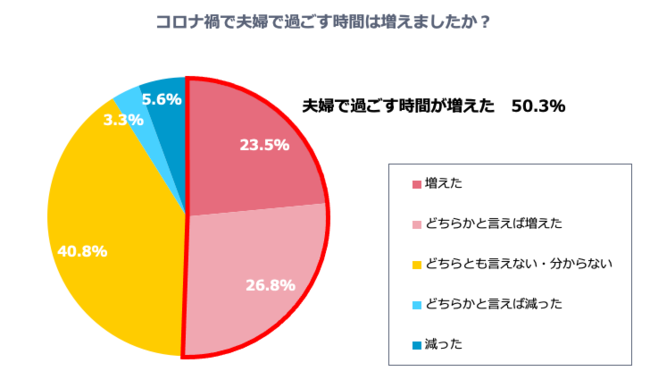 - 50.3%の夫婦がコロナ禍の影響により「夫婦で過ごす時間が増えた」