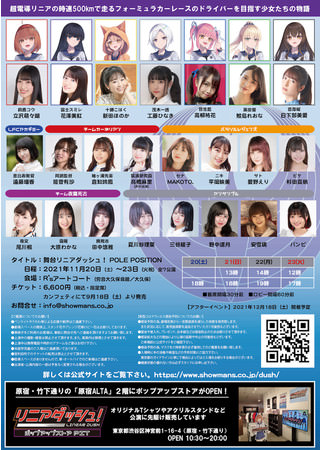 株式会社ショーマンズ(所在地:東京都文京区、代表取締役:貞方祥)は、メディアミックス展開を計画中のオリジナルコンテンツ「リニアダッシュ!」の舞台公演第1弾を11月20日(土)〜23日(火祝)まで大久保のR’sアートコートにて上演致します。