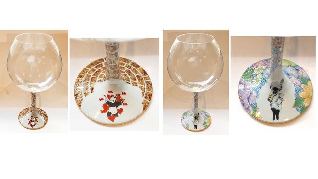 また、バンクシーのアートを纏った、ロマネコンティのための優美なワイングラス4点も出品。