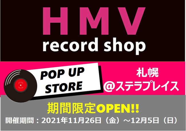 株式会社ローソンエンタテインメント(本社:東京都品川区、代表取締役社長:渡辺 章仁)は、2021年11月26日(金)から12月5日(日)までの期間、レコード専門店「HMV record shop」のポップアップショップを、札幌ステラプレイスにて期間限定でオープンいたします。