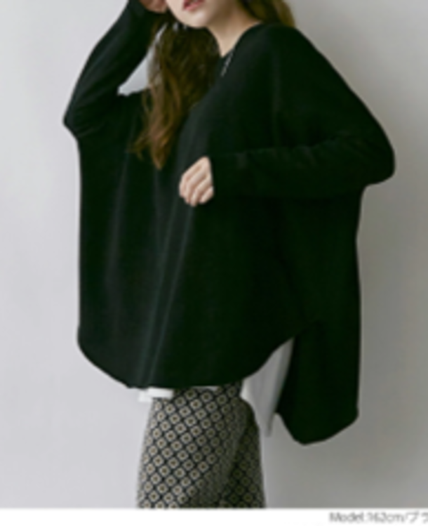 トレンドの程よいオーバーサイズとケープデザインが特徴的な裏起毛のスウェットトップス。立体的なボリューム感のあるポンチョ型シルエットと、柔らかな雰囲気を醸し出すラウンドカットの裾がこなれ感漂うお洒落なアイテムです。ゆったりとした身幅とヒップが隠れる長めの丈が気になる体のラインを拾わず、大人女性には有難いデザインです。4色展開のニュアンスカラーがカジュアルな印象の裏起毛スウェットを大人のリラクシースタイルにシフトチェンジ。