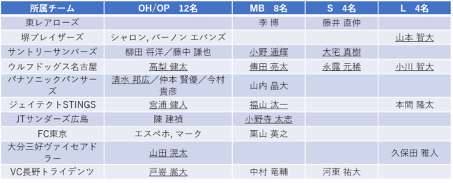 - 12/25 V1男子オールスターゲーム出場予定選手(下線はファン投票での選出)