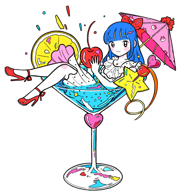 カクテルの中でほほ笑む遠野さんをイラストレーターいちさんが描き下ろし。