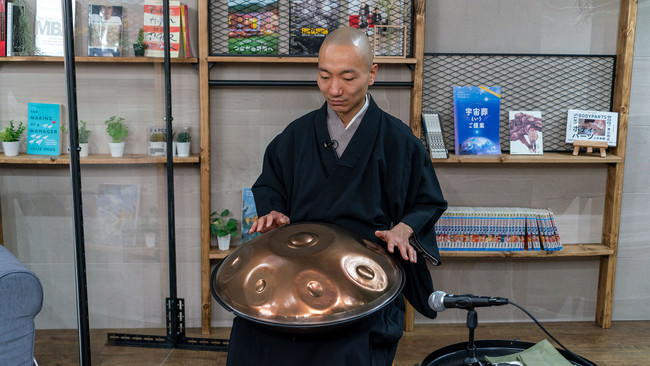 スタジオでもハンドパンという楽器を使って実際にお経を演奏していただき、途中からは寝ていたのか起きていたのか分からなくなるほどでした。