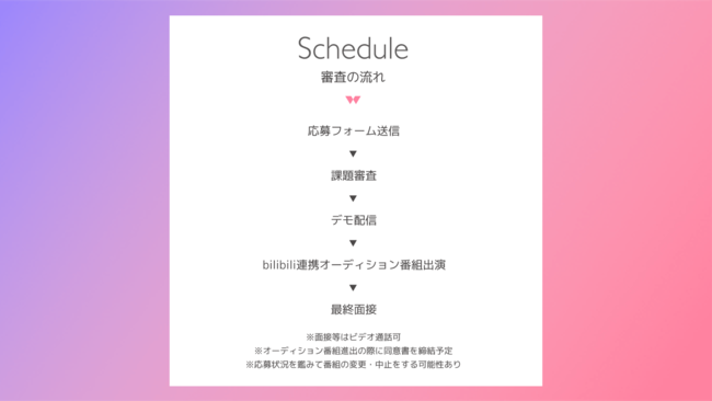本オーディションでは中国大手配信プラットフォームbilibiliの後援のもと展開をいたします。