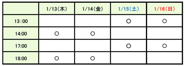 1月15日(土)13:00公演、17:00公演