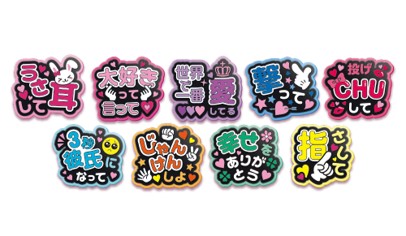 「世界で一番愛してる」や「うさ耳して」など、アイドルのコンサート会場などでよく見かける“ファンサうちわ”を色とりどりのカラフルでかわいいデザインで再現!