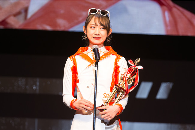 「私は新人ですが、このレースクイーン大賞に挑戦するときに今まで誰も成し遂げたことがない新しい伝説を作ると言って、この2カ月全力で挑戦させていただきました。そんな私を全力で支えて、全力の愛で応援してくださったみなさんがいたからです」