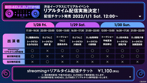 株式会社ブシロードミュージック(本社:東京都中野区、 代表取締役社長:森川浩)は、『#D4DJ_DJTIME』を開催したことをお知らせいたします。