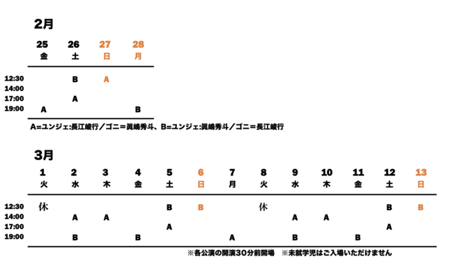 2月26日(土) B公演② 12:30開演/A公演③ 17:00開演