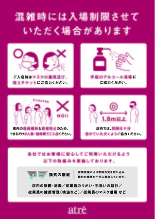 アトレでは、お客様ならびに従業員の健康と安全に配慮し、