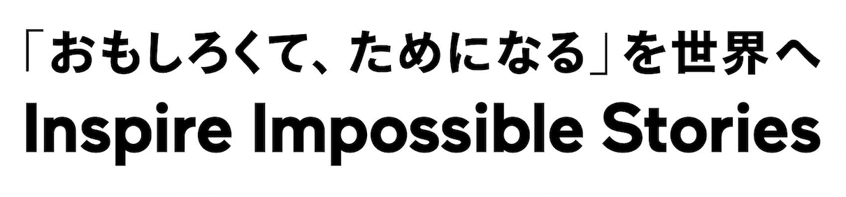 作り手と読者・ユーザーの両者に新たな発見や創造性を提供し(=Inspire)、あり得ない、見たこともないような(=Impossible)物語(=Stories)を生み出し続ける会社である、という決意を込めた講談社のパーパスです。