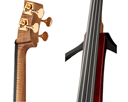 コンパクトでシンプルな外観ながらも、アコースティックベースと同じ位置に配置した駒、指板、ネックなどのパーツや、その形状をかたどったフレーム、楽器が回転しない重心設定により、アコースティックベースと同じ感覚で演奏することができます。