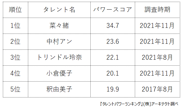 ○引用元が「株式会社アーキテクト」「タレントパワーランキング」である旨を明記