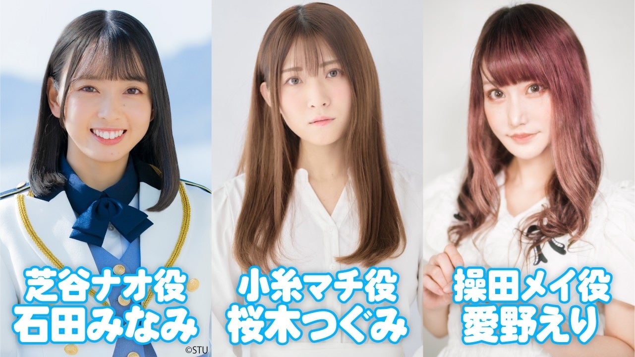 声優は「ミルクのケビン THE MOVIE」で主演を務めた桜木つぐみ(クロコダイル)、瀬戸内エリアを中心に活動を行う石田みなみ(STU48)、TVアニメ「アイカツ!」 にてSTAR☆ANISとして歌唱を担当した愛野えり(ディアステージ)の参加が決定しています。