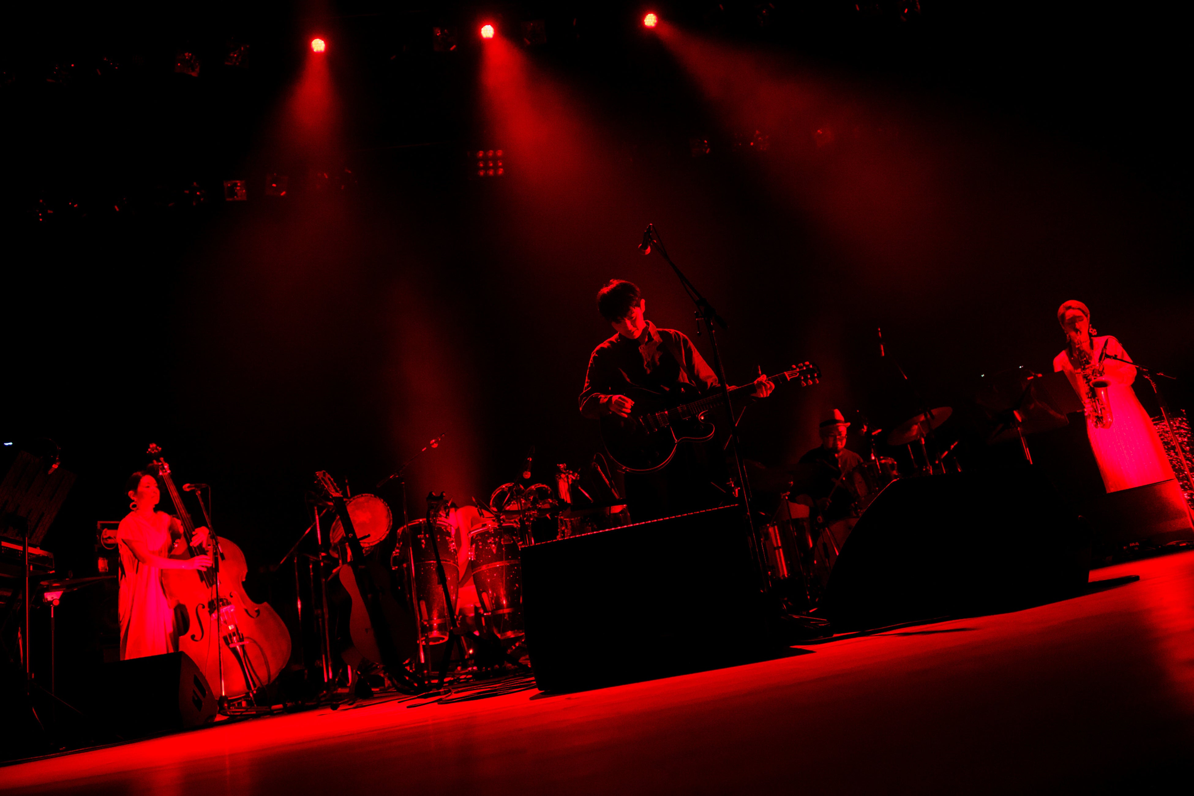最後の音が鳴り終わると一つずつスポットライトが消えていき、ライブ冒頭の暗闇に回帰。得体のしれないあの音が再び聞こえてくる。明かりが点くと、ステージにはもう誰もいなかった。長い夢から突如目覚めたような感覚。激しい音を打ち鳴らすことなく、大きな衝撃をオーディエンスの心に与えてライブは静かに幕を閉じた。分かりやすい説明や解説を寄せ付けない「心理ツアー」。純粋に音楽に身を浸す楽しみと同時に、オーディエンスそれぞれの内なる自問自答を誘発するような、刺激に満ちた舞台芸術のようなステージは他に喩えようのない、まさに唯一無二のライブだった。是非、オンエアで体験していただきたい。