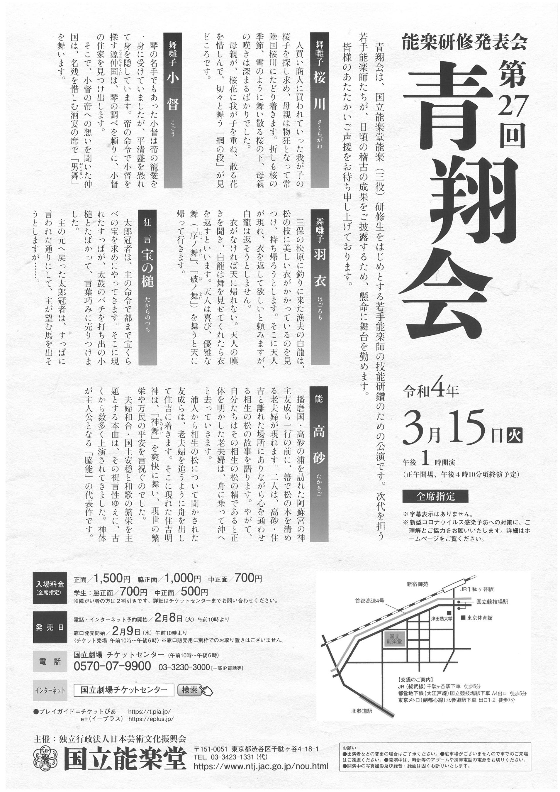 国立能楽堂 能楽研修発表会『第27回青翔会』