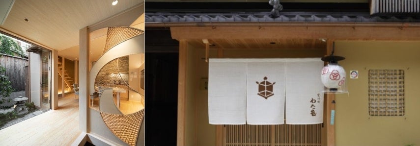 八坂五重の塔を目の前に眺めながら、随所に散りばめられた日本の美の中で静かに流れる時間。石畳の路地を抜けて、風情溢れる花街・宮川町の町屋で京料理「わた亀」のお料理と日本酒を堪能していただいた後は、細部にまで京都が息づく宿でゆったりお過ごしください。