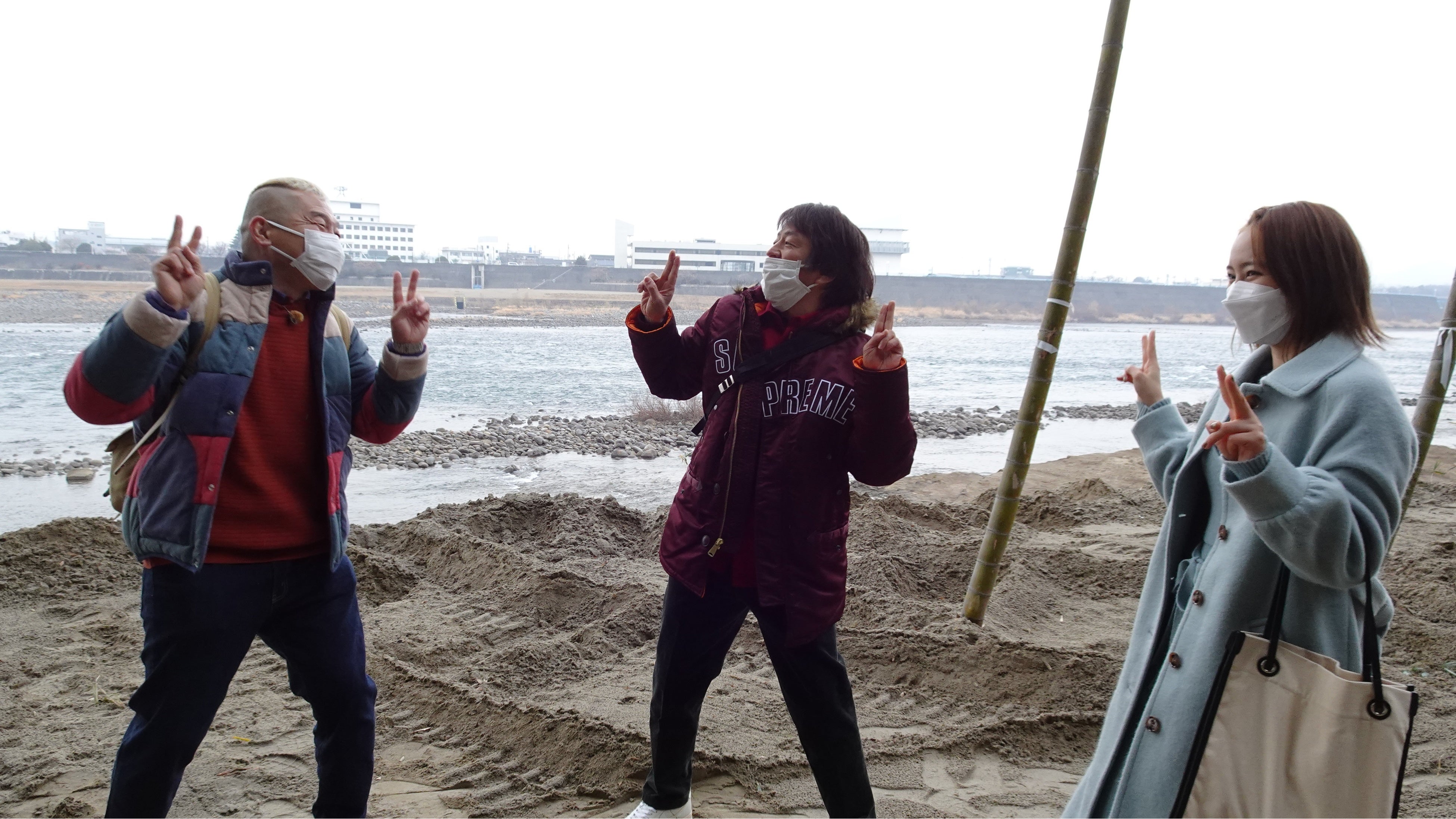 ウドちゃん、堀内健さん(ホリケンさん)、岡田結実ちゃんの3人は、木曽川沿いで地元の方々が整備した美しい竹の遊歩道、通称〝かぐや姫の散歩道〟から最初の旅先へ移動!