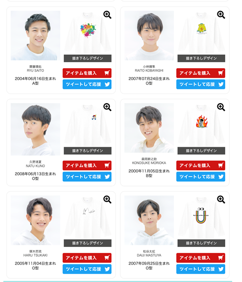 第34回 ジュノン・スーパーボーイ・コンテストのファイナリストの15名が雑誌「JUNON」のモデル出演をかけてオリジナルアイテムの販売ランキングバトルを繰り広げます。ファンはもちろん、次世代のスターのアイテムをゲットできるイベントとなっています。